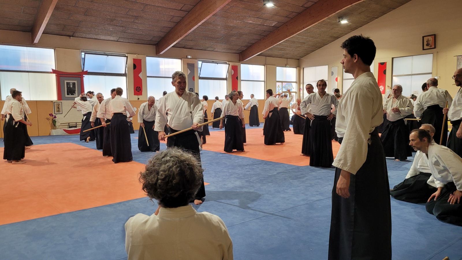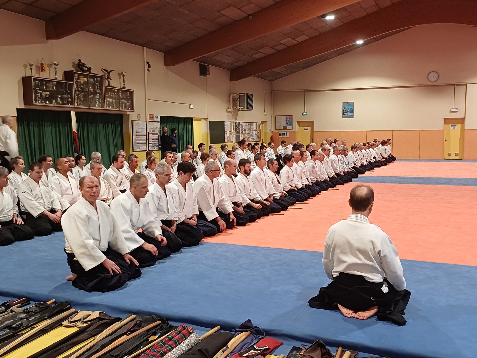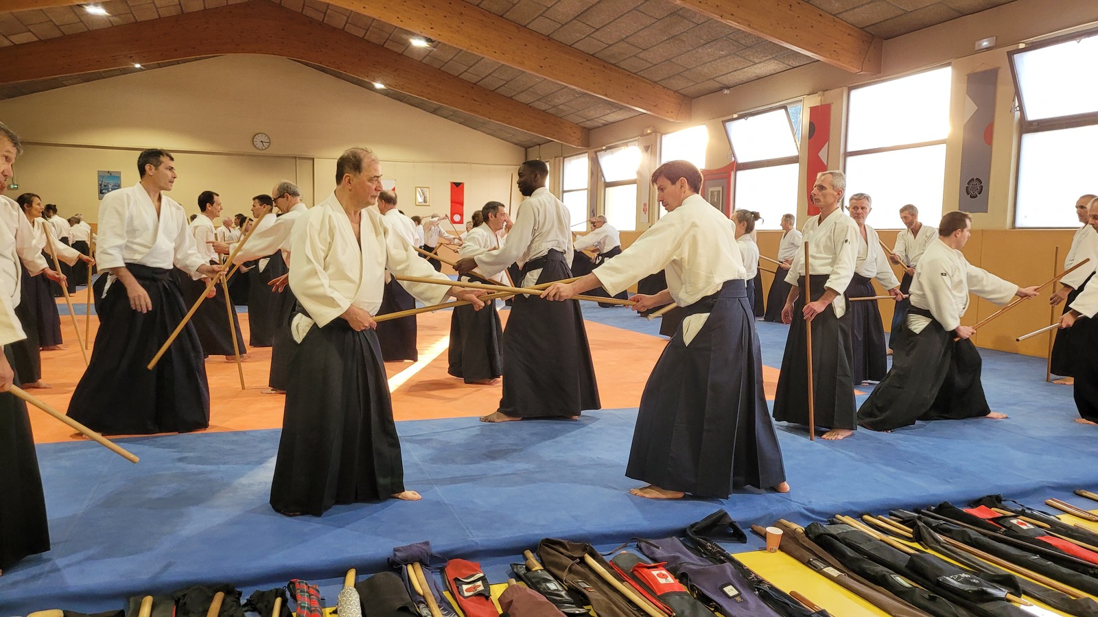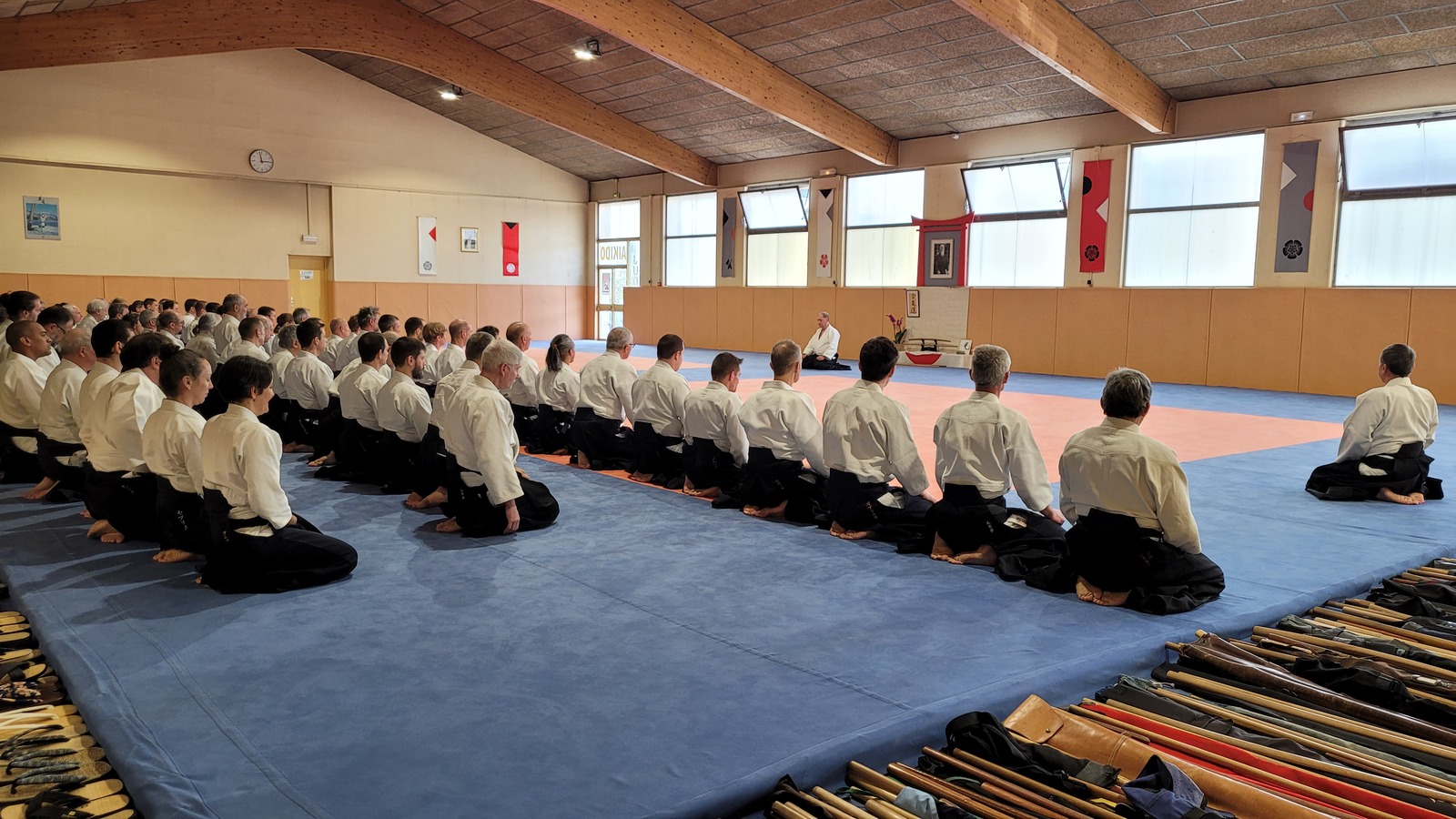 Ce week-end du 15 et 16 février 2025, l’Aïkikaï d’Annecy a accueilli et organisé un stage national d’aïkido destiné aux hauts gradés. Plus de 80 pratiquants, tous ceintures noires de 4ème à 7ème dan se sont retrouvés au Dojo du Vernay pour une pratique intensive et une réflexion sur notre discipline. Venus de toutes les régions de France, pratiquantes et pratiquants, ont eu à cœur de partager et de perfectionner cet art martial qu’est l’aïkido dans ce magnifique Dojo mis à notre disposition par la ville d’Annecy. Ce séminaire était placé sous l’égide de la FFAB – Fédération Française d’Aïkido et de Budo. Il a été animé par deux techniciens fédéraux, monsieur Didier ALLOUIS ceinture noire 7ème dan, président de la fédération et par monsieur Robert DALESSANDRO, ceinture noire 7ème dan. Tous deux, techniciens de très haut niveau chargés d’enseignement national. Après trois demi-journées d’étude, les aïkidokas ont regagné leurs Dojos respectifs pour partager la richesse de l’enseignement reçu. Aïkikaï d’Annecy- cours tous les mardi et vendredi et le lundi matin cours pour les seniors. Afin de mener à bien ce stage, une organisation était nécessaire (nettoyage du tapis, préparation du café, l'accueil, préparation de la salle de repas à la Papeterie, parking, accueil pour le repas du midi et du soir, rangement des armes et des vestiaires.) Nous souhaitons remercier toutes les personnes qui se sont portées volontaires pour aider.