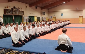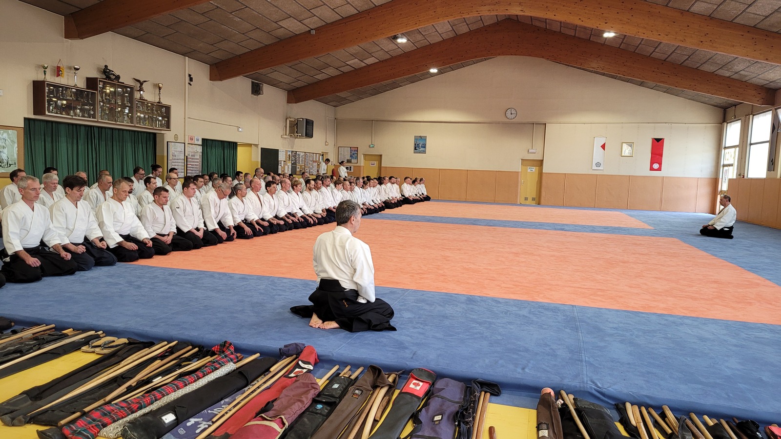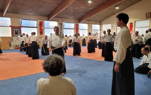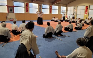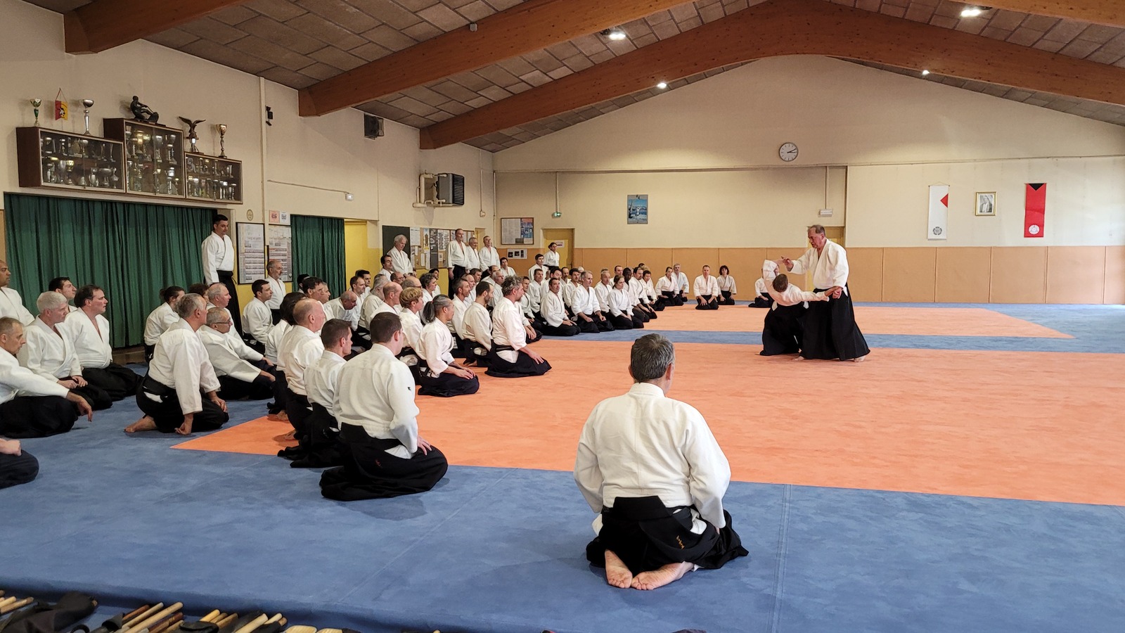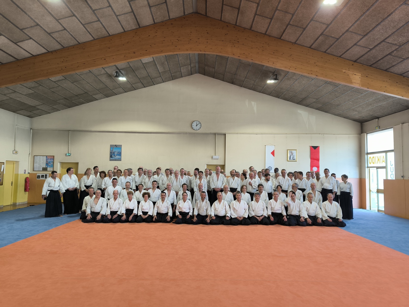 Ce week-end du 15 et 16 février 2025, l’Aïkikaï d’Annecy a accueilli et organisé un stage national d’aïkido destiné aux hauts gradés. Plus de 80 pratiquants, tous ceintures noires de 4ème à 7ème dan se sont retrouvés au Dojo du Vernay pour une pratique intensive et une réflexion sur notre discipline. Venus de toutes les régions de France, pratiquantes et pratiquants, ont eu à cœur de partager et de perfectionner cet art martial qu’est l’aïkido dans ce magnifique Dojo mis à notre disposition par la ville d’Annecy. Ce séminaire était placé sous l’égide de la FFAB – Fédération Française d’Aïkido et de Budo. Il a été animé par deux techniciens fédéraux, monsieur Didier ALLOUIS ceinture noire 7ème dan, président de la fédération et par monsieur Robert DALESSANDRO, ceinture noire 7ème dan. Tous deux, techniciens de très haut niveau chargés d’enseignement national. Après trois demi-journées d’étude, les aïkidokas ont regagné leurs Dojos respectifs pour partager la richesse de l’enseignement reçu. Aïkikaï d’Annecy- cours tous les mardi et vendredi et le lundi matin cours pour les seniors. Afin de mener à bien ce stage, une organisation était nécessaire (nettoyage du tapis, préparation du café, l'accueil, préparation de la salle de repas à la Papeterie, parking, accueil pour le repas du midi et du soir, rangement des armes et des vestiaires.) Nous souhaitons remercier toutes les personnes qui se sont portées volontaires pour aider.