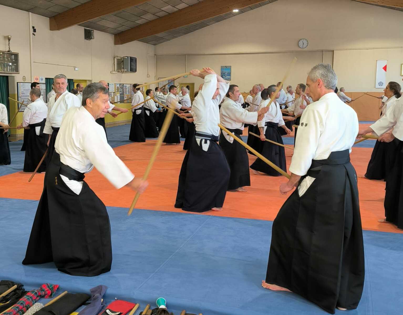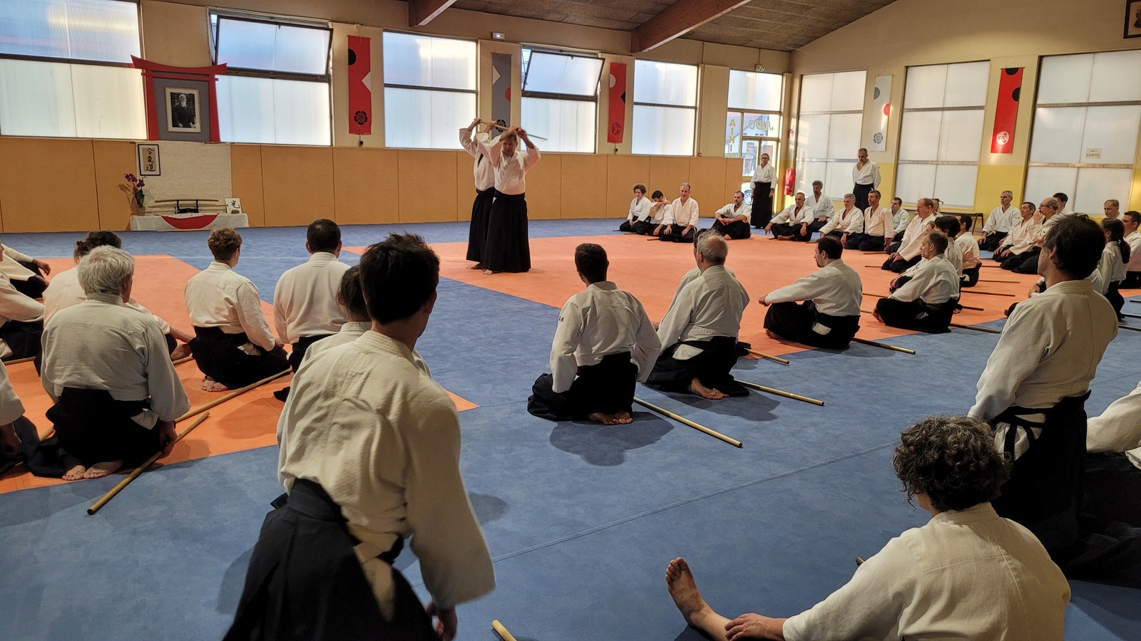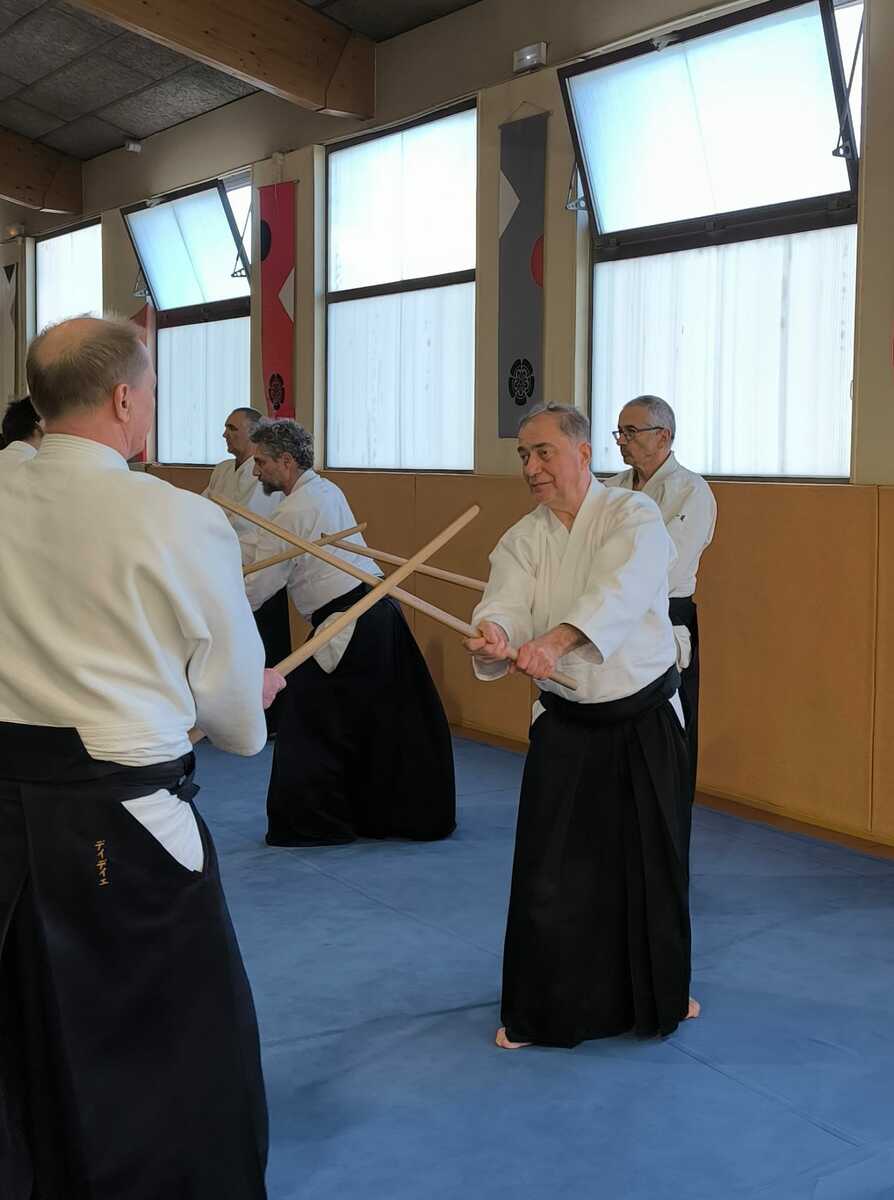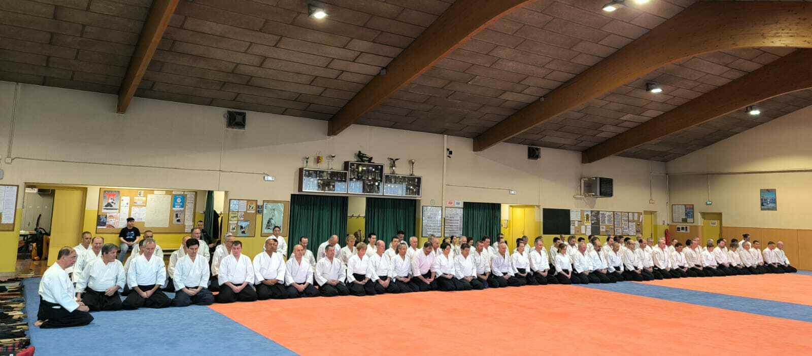 Ce week-end du 15 et 16 février 2025, l’Aïkikaï d’Annecy a accueilli et organisé un stage national d’aïkido destiné aux hauts gradés. Plus de 80 pratiquants, tous ceintures noires de 4ème à 7ème dan se sont retrouvés au Dojo du Vernay pour une pratique intensive et une réflexion sur notre discipline. Venus de toutes les régions de France, pratiquantes et pratiquants, ont eu à cœur de partager et de perfectionner cet art martial qu’est l’aïkido dans ce magnifique Dojo mis à notre disposition par la ville d’Annecy. Ce séminaire était placé sous l’égide de la FFAB – Fédération Française d’Aïkido et de Budo. Il a été animé par deux techniciens fédéraux, monsieur Didier ALLOUIS ceinture noire 7ème dan, président de la fédération et par monsieur Robert DALESSANDRO, ceinture noire 7ème dan. Tous deux, techniciens de très haut niveau chargés d’enseignement national. Après trois demi-journées d’étude, les aïkidokas ont regagné leurs Dojos respectifs pour partager la richesse de l’enseignement reçu. Aïkikaï d’Annecy- cours tous les mardi et vendredi et le lundi matin cours pour les seniors. Afin de mener à bien ce stage, une organisation était nécessaire (nettoyage du tapis, préparation du café, l'accueil, préparation de la salle de repas à la Papeterie, parking, accueil pour le repas du midi et du soir, rangement des armes et des vestiaires.) Nous souhaitons remercier toutes les personnes qui se sont portées volontaires pour aider.
