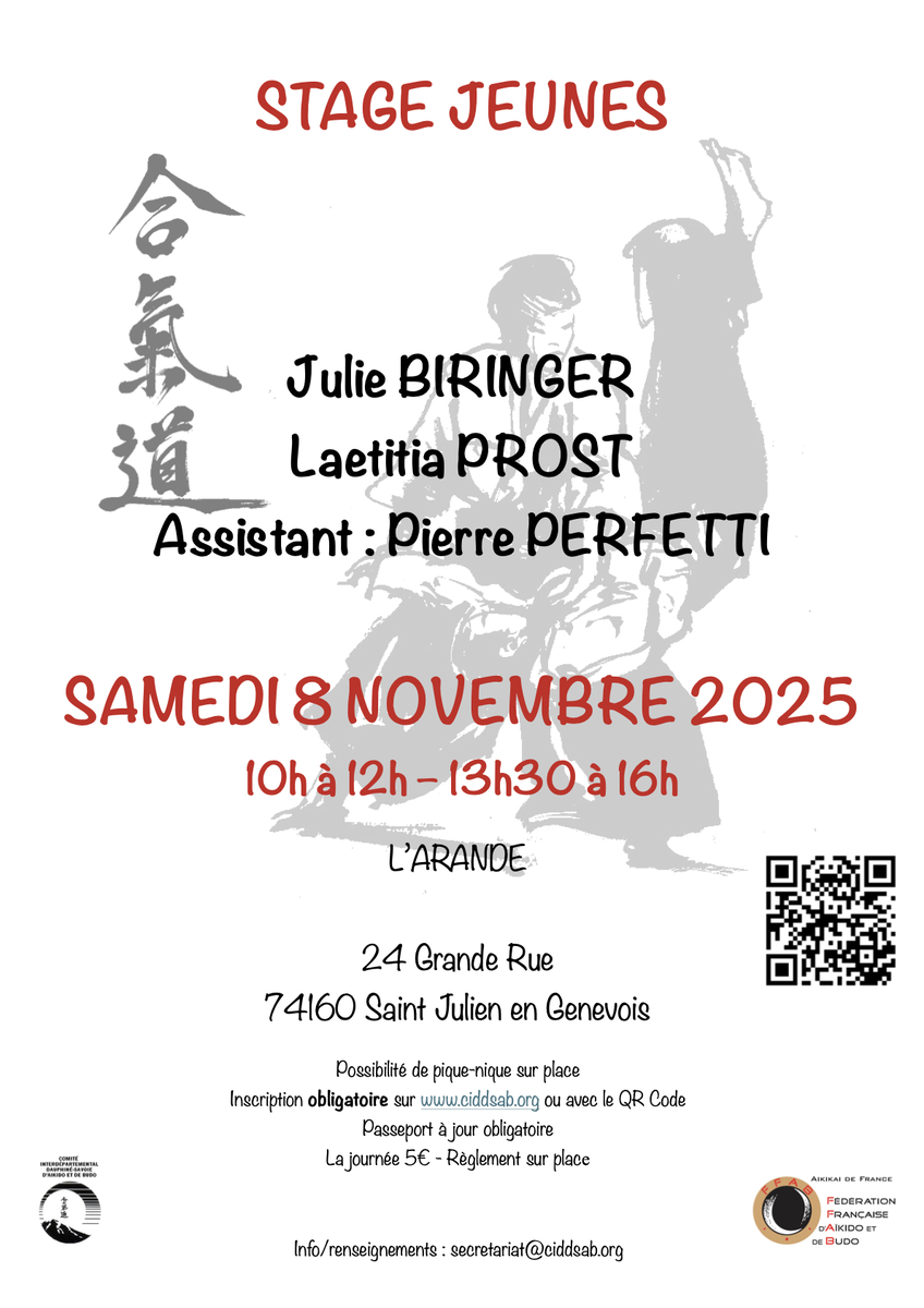 Stage jeunes à Saint Julien en Genevois (74) avec Julie Biringer et Laetitia Prost, assistées par Pierre Perfetti le samedi 8 novembre 2025.
